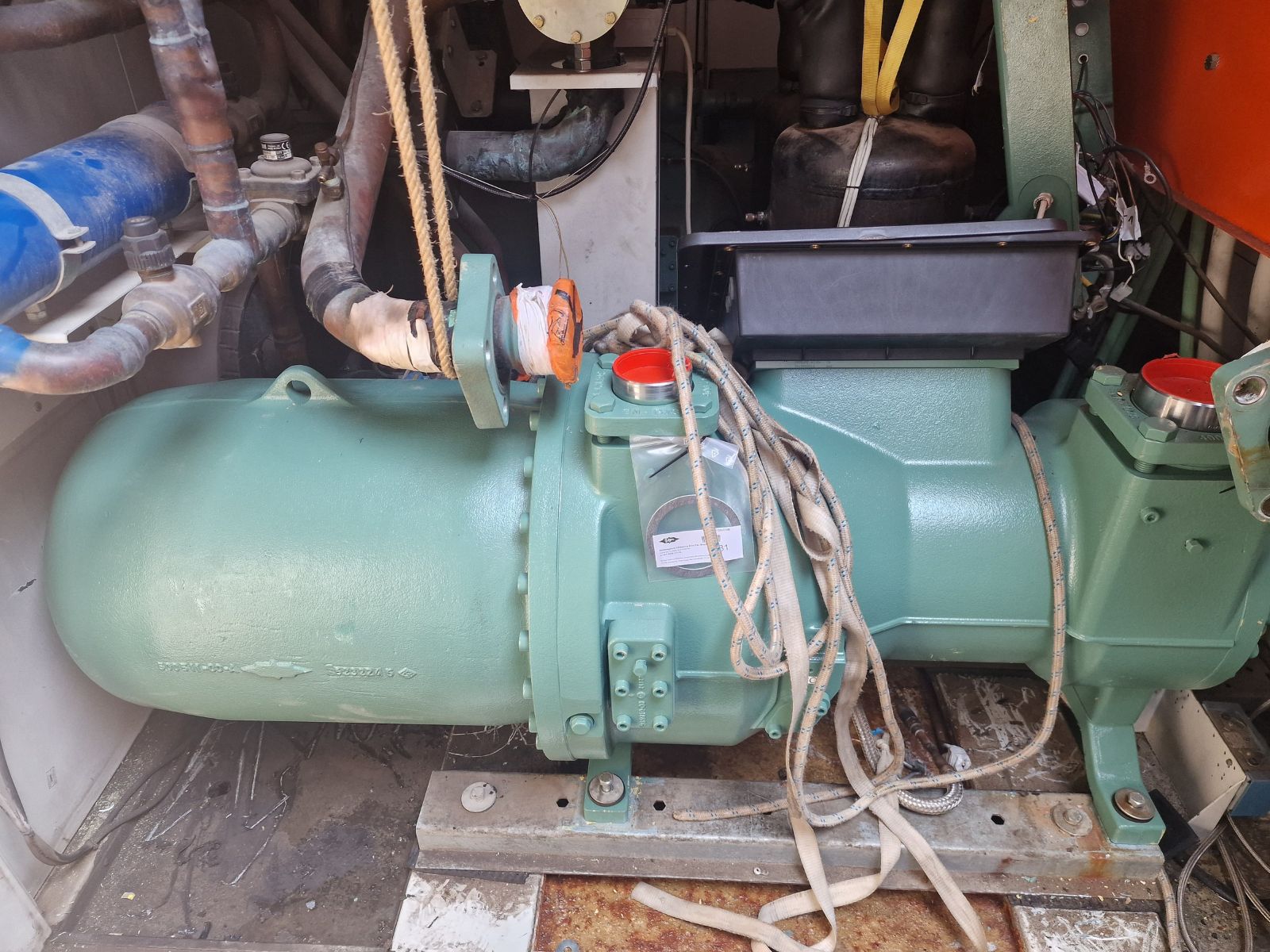 Reparación enfriadora aire agua BOMBA DE CALOR CLIMAVENETA SRAN/B-2202 con una potencia nominal en frío de 595Kw y 664Kw en calor, con la sustitución de compresor semihermético tornillo BITZER CSH.